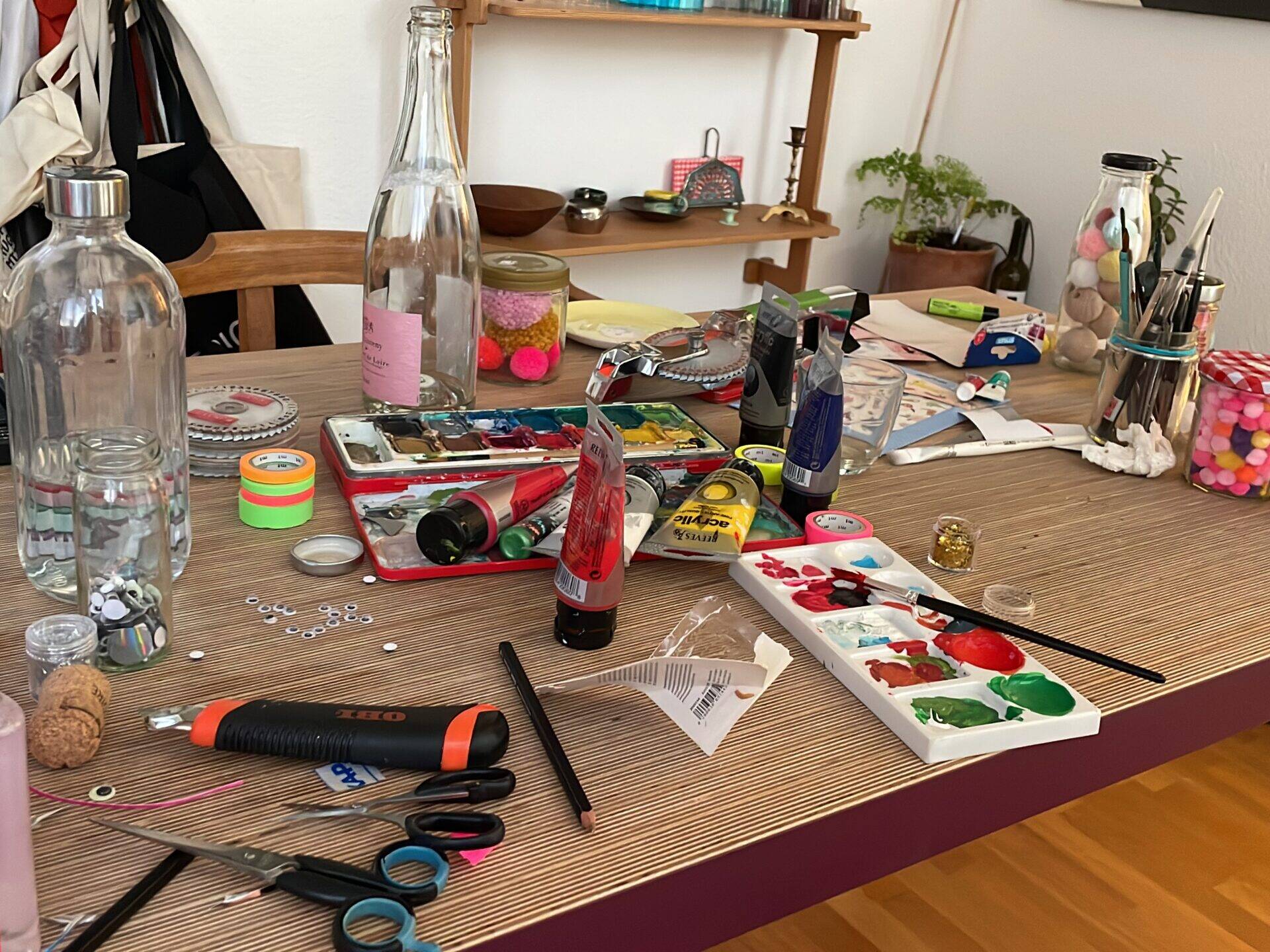 Eine Entdeckungsreise mit den eigenen Lieblingsfarben und -dingen. Hier gestalten wir gemeinsam erdachte Welten in den gewählten Farbtönen z.B.: ein pinker Achterbahn-Plüschhase, ein gelbes Zitronen-Rennauto oder ein buntes Gummibärchen-U-Boot.